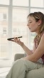 Young woman activating voice search on her smartphone, symbolizing easy access to information and modern digital habits