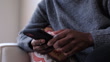 Close-up of unrecognizable black woman sitting on sofa at home using her smart phone