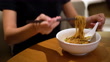 Woman stirring and eating Zhajiangmian with chopsticks - 4K stock video