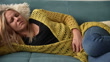 Woman Suffering from Abdominal Pain Lying on Sofa - 4K stock video