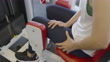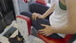 Woman training on leg abduction machine and hurting her upper leg - 4K stock video