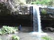 Woman standing underneath Kalimna waterfall in Victoria, Australia