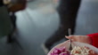Woman walking and carrying plate with tasty meal to restaurant table - 4K stock video