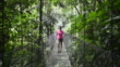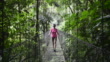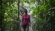 Woman walks along pathway through jungle - HD stock video