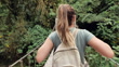 Woman with Backpack Crossing Jungle Suspension Bridge - 4K stock video