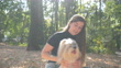 Woman with her pet on her lap in the park inside the city - 4K stock video