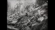Woman (Ruth Roland) woman holds onto runaway train car, man swings on rope to grab her before the train car goes over a cliff into water.
