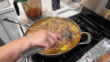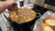 Women cooking mexican picadillo de puerco con papas (shredded pork meat with potatoes) for homemade enchiladas