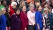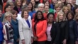 Women of the House Democratic Caucus pose for media and press on the East Front Plaza of the US Capitol Building a day after opening of the 116th Congress as Democrats assumed control of the House of Representatives, Speaker Nancy Pelosi at center.