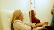 2 women sitting in the armchairs of the clinic waiting for the nurse to channel them - 4K stock video
