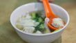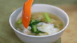 Wonton Dumpling Soup with Vegetables in White Bowl - 4K stock video