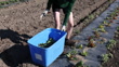 A worker harvests rainbow chard at Paynters Fruit Market farm in the Okanagan Valley in Kelowna, British Columbia, Canada, on Wednesday, July 3, 2024.
