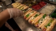 Worker Prepares Line of Chicago-Style Hot Dogs