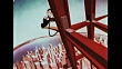 / worker rivets a section of a bridge or building standing above the skyline of the city / whistles as he rivets without paying much attention to the task at hand. Worker rivets on high building or bridge on January 01, 1948 (Footage by Getty Images)