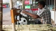Restaurant worker crushing sugarcane