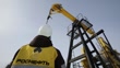 Workers inspect an oil pumping jack, also known as a 'nodding donkey' at a pumping site, operated by Rosneft PJSC, in the Samotlor oilfield near Nizhnevartovsk, Russia, on Wednesday, March 22, 2017