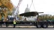 WASHINGTON, DC - NOVEMBER 17: Workers watch as a crane lifts the 2023 U.S. Capitol Christmas Tree to the West Front of the U.S. Capitol after it arrived on November 17, 2023 in Washington, DC. This year’s tree is a 63-foot Norway spruce from the Monongahela National Forest in West Virginia. (Footage by Alex Wong/Getty Images)