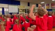 Various of schoolchildren (at British athlete Dina Asher-Smith's former primary school) cheering as watching large screen (barely seen) showing Dina Asher-Smith winning 200m race at IAAF World Athletics Championships 2019