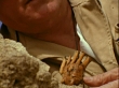 MONTAGE Archaeologist resting on a rocky slope examining and speaking about a small fossilized hand / Olduvai Gorge, Africa