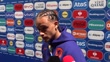 DORTMUND, GERMANY - JULY 10: Xavi Simons, Netherlands midfielder, talks about England's penalty following England's 2-1 win over Netherlands in the UEFA EURO Semifinal at BVB Stadion Dortmund on July 10, 2024 in Dortmund, North Rhine-Westphalia. (Footage by Niche Sport Media via Getty Images)