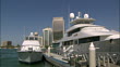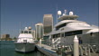 MS Yachts moored at Dubai Creek, National Bank of Dubai building in background, Dubai, United Arab Emirates - HD stock video