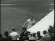 B/W 1961 Yankee Roger Maris exiting dugout + doffing cap after hitting 61st home run / newsreel