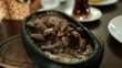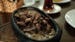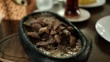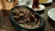 Yaprak Ciger or chopped liver boiling in special traditional oven pan, guvec.