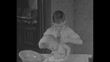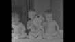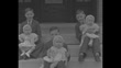 8-year-old triplets Harold, Howard, and Herbert Stevens walking, each helping an 8-month-old baby girl triplet walk; a woman walks with them / the Stevens triplets standing around baby girl triplets Carrolee, Nancy, and Sara Harned in a single baby stroller as they pose for photos; the girls get restless in their stroller / group shot of the Stevens boys / group shot of the Harned baby girls, seated on a blanket, looking around / three shots of boys washing baby girls / the three boys, each holding a baby girl, seated outdoors on steps and posing for photos / Note: exact day not known