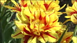Yellow and red double tulips rustle in a breeze.