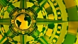 Yellow, loopable, global compass rose with World Map and Cardinal Points.