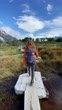 Young Caucasian woman hiking near Fitz Roy mountain in Patagonia