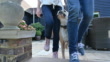 Young couple and four dogs exiting home for outdoor exercise - 4K stock video