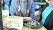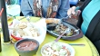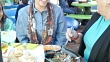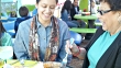 Young Hispanic woman having meal with grandmother outdoors on restaurant patio - HD stock video