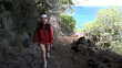 MS Young lady in hiking clothes and hiking up Pololu Valley Trail / Waimea, Hawall, Big Island, United States - HD stock video