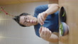 Asian young man with eyeglasses snacking on edamame or Japanese green soybean while waiting for a friend in izakaya.