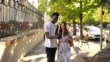 Young multi ethnic people using smart phone in the city. Diverse couple or friends using smart phone - 4K stock video