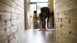 Young people leaving the guest house