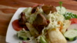 Yuca con chicharrón served with raw cabbage with lemon, mojo - El Salvadorian Style Fried Yucca (Yuca Frita) Yuca frita salvadoreña salvadorean - 4K stock video