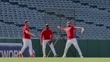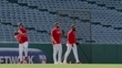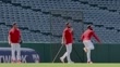 ANAHEIM, CALIFORNIA - MAY 23: (EDITORS NOTE: audio/music licensing is not included.) Zach Neto #9, Nolan Schanuel #18, and Jo Adell #7 of the Los Angeles Angels warm up before the game against the Miami Marlins at Angel Stadium of Anaheim on May 23, 2025 in Anaheim, California. (Footage by Luke Hales/Getty Images)