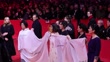 BERLIN, GERMANY - FEBRUARY 16: (SLOW-MO) (L-R) Zahra Amir Ebrahimi, Melika Foroutan, Jasmin Tabatabai and activists show a banner with the slogan "Women Life Freedom" as they attend the "She Came to Me" premiere and Opening Ceremony red carpet during the 73rd Berlinale International Film Festival Berlin at Berlinale Palast on February 16, 2023 in Berlin, Germany. (Footage by Christian Ender/Getty Images)