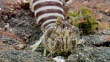 Zebra mantis shrimp (Lysiosquillina maculata) on a sandy seabed. - HD stock video