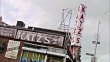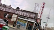 ZOOM IN ON KATZ'S DELI SIGN. BRICK BUILDING. RESTAURANT. PEDESTRIANS ON SIDEWALK. EAST VILLAGE OR NOHO, LOWER EAST SIDE OF MANHATTAN.