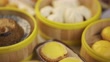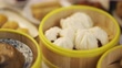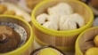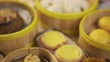 Zoom in tradition chinese food dim sum display - 4K stock video