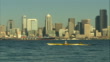 ZOOM OF SEATTLE SKYLINE WITH WATER IN FOREGROUND