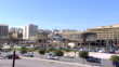 BEIRUT, LEBANON - CIRCA 2004: zoom-out from a mosque to a view of the ruined Mar Mansour church and bullet-ridden Dome City Center in downtown Beirut both damaged by the Civil War.