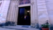 MAYFOUK, LEBANON - CIRCA 2004: Zoom-out of Amine Gemayel (President of Lebanon 1982-1988) walking with a Maronite priest towards a church.