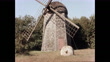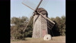 Zoom out shot of Jamestown Windmill against sky, Rhode Island, USA - 4K stock video