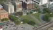 Zooming in shot of a white X mark on the Elm Street pavement where President Kennedy was fatally shot - 4K stock video