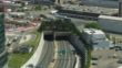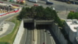Zooming in shot of the entrance of the Ted Williams Tunnel from South Boston - 4K stock video